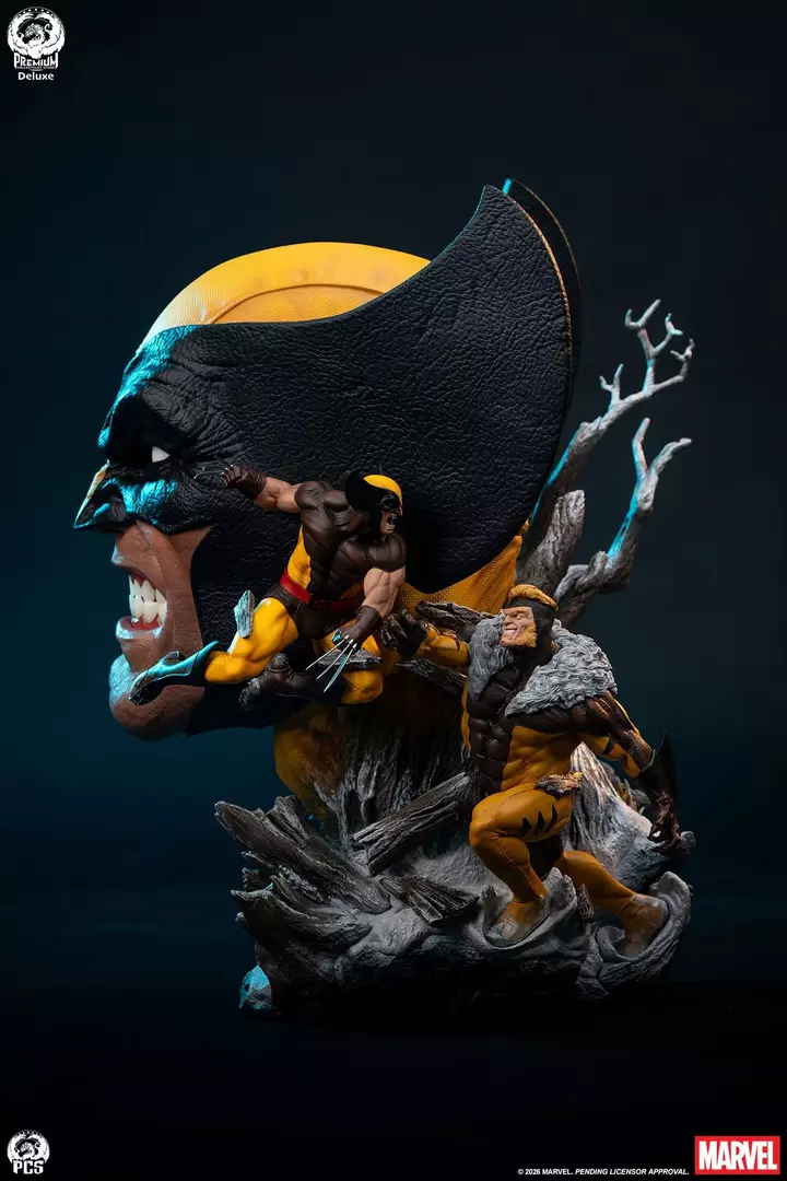 La composición Deluxe eleva la pieza con una escena narrativa que rodea el busto principal, incorporando distintas representaciones de Wolverine en acción, integradas sobre una base de inspiración natural y salvaje. El trabajo de textura en la máscara, la piel y los elementos orgánicos es sobresaliente, mientras que la pintura realista aporta profundidad, contrastes y un acabado de alto nivel propio de la línea Fine Art de PCS. El resultado es una obra impactante, pensada para dominar cualquier vitrina de colección.