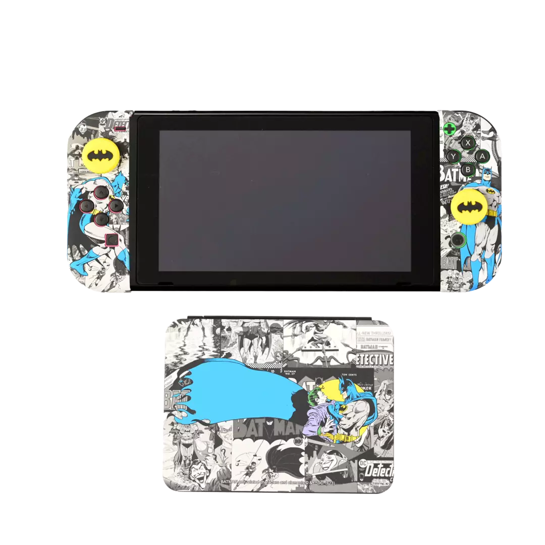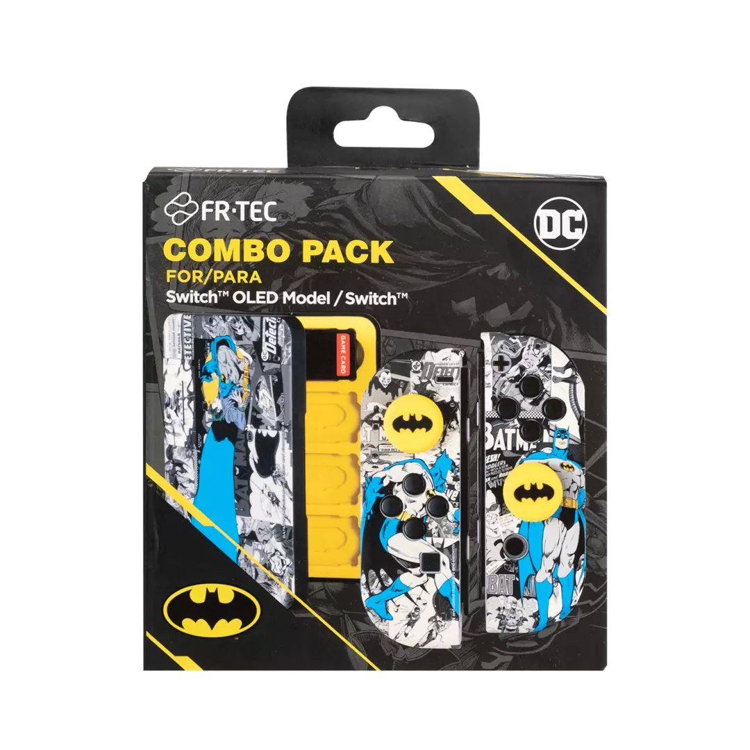 El DC Combo Pack Batman para Nintendo Switch combina protección, diseño y comodidad en un set inspirado en el icónico superhéroe de Gotham. Fabricado por FR-TEC bajo licencia oficial de DC Comics, este pack incluye una funda protectora para la consola y grips para los Joy-Con, ofreciendo una experiencia de juego cómoda y segura mientras personalizas tu sistema con un toque de elegancia oscura.
