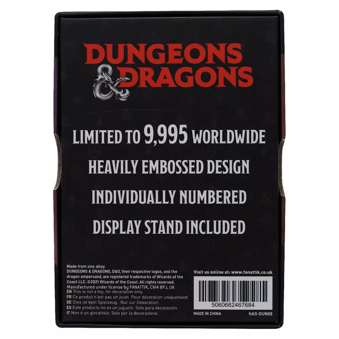 Rinde homenaje a uno de los pilares fundamentales de Dungeons & Dragons con el Lingote Dungeon Master's Guide, una pieza de colección exclusiva creada por Fanattik. Inspirado en la emblemática guía para maestros de juego, este artículo combina diseño y exclusividad en una presentación única.