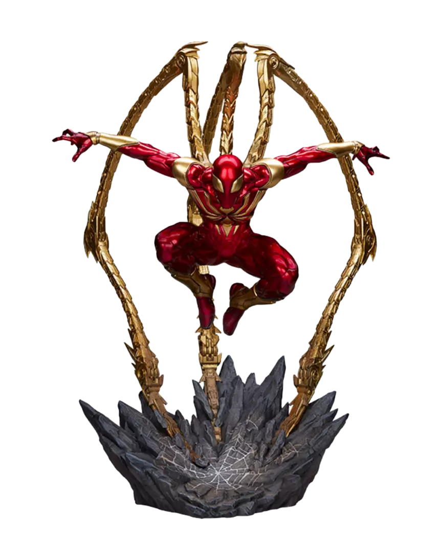 La Iron Spider Premium Format Figure está totalmente esculpida y cuenta con un diseño que desafía a la gravedad gracias a los inventores Peter Parker y Tony Stark (¡y a los propios artistas de Sideshow, por supuesto!). La base de esta estatua de Marvel presenta texturas de rocas irregulares y escombros detalladas con telarañas para realzar la exposición. Este coleccionable de Spiderman llamará la atención y será la pieza central de la colección de cualquier fan.