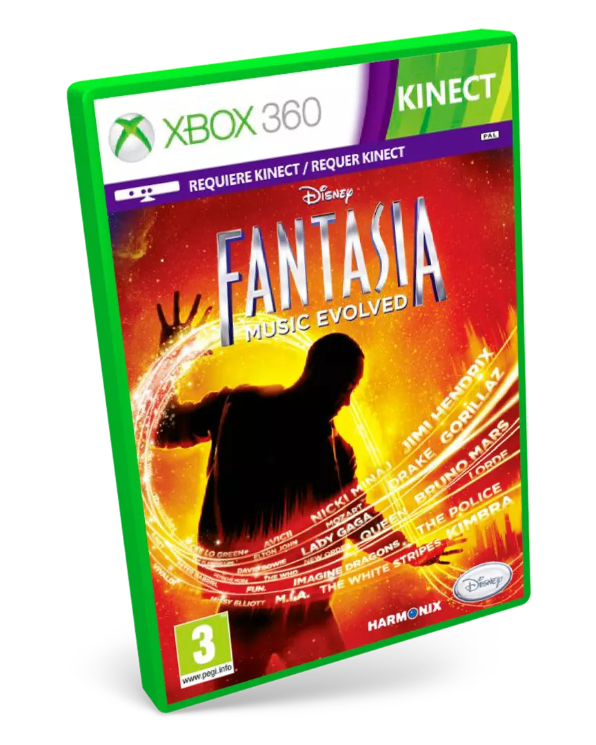 Fantasia: Music Evolved” es un videojuego musical inspirado en el clásico animado de Disney “Fantasía”. En el videojuego, los jugadores acceden a los mágicos reinos de Fantasía, seleccionados por el legendario hechicero Yen Sid, para perfeccionar su destreza musical y mágica como el nuevo aprendiz. Fantasia: Music Envolved traslada a los jugadores en un viaje interactivo de inmersión a través de los mundos de la música y la magia.