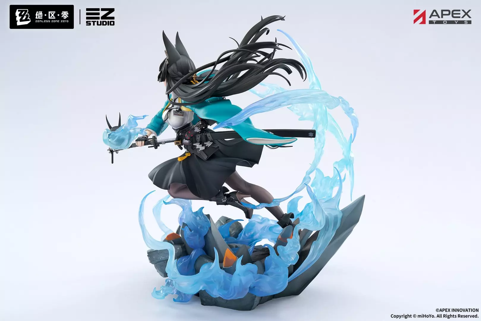 Hoshimi Miyabi, uno de los personajes más icónicos de Zenless Zone Zero, cobra vida en esta espectacular figura a escala 1/7 fabricada por APEX Innovation. La escultura transmite a la perfección su carácter elegante y letal, capturando un instante de combate en plena ejecución, con una composición cargada de movimiento y energía visual.