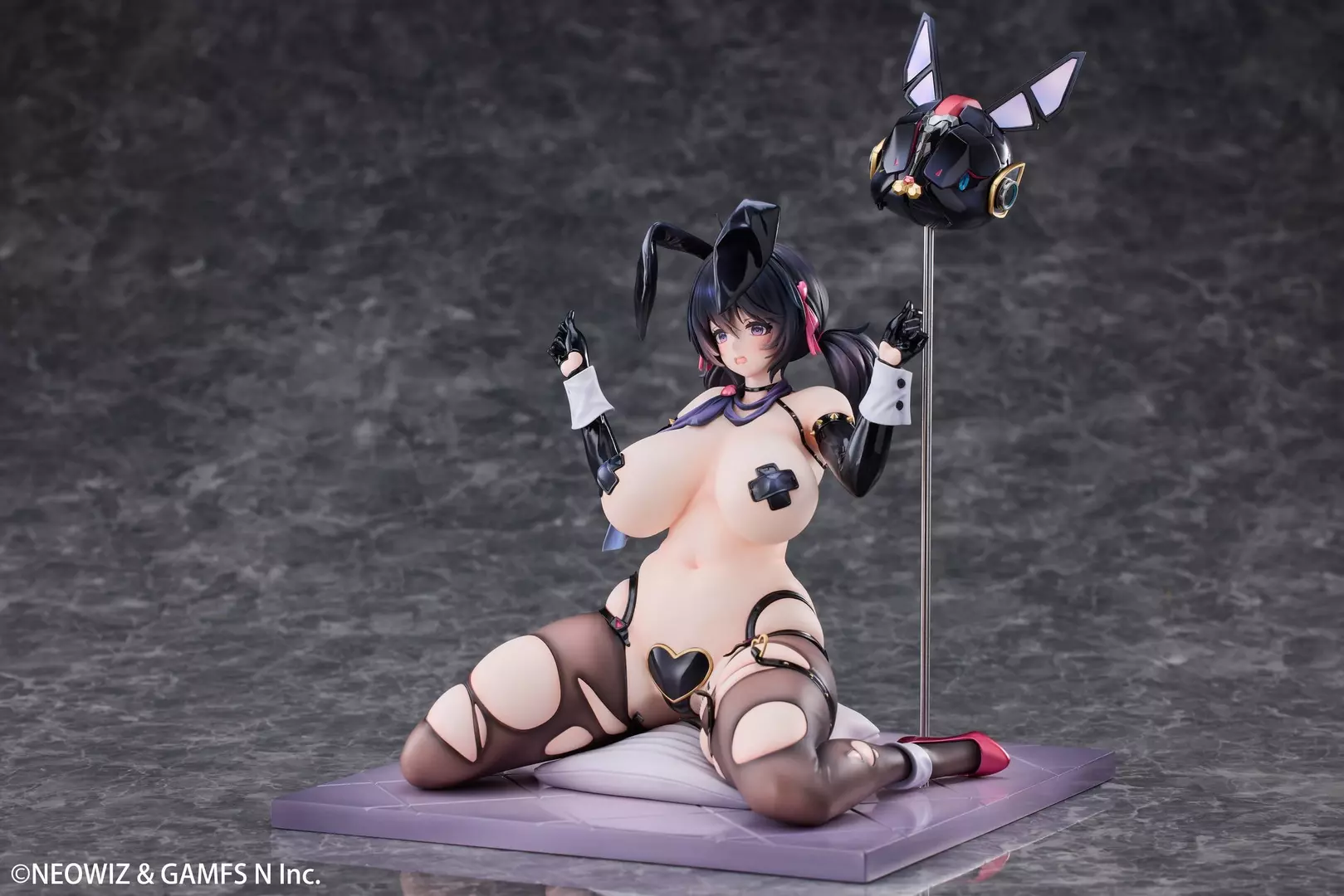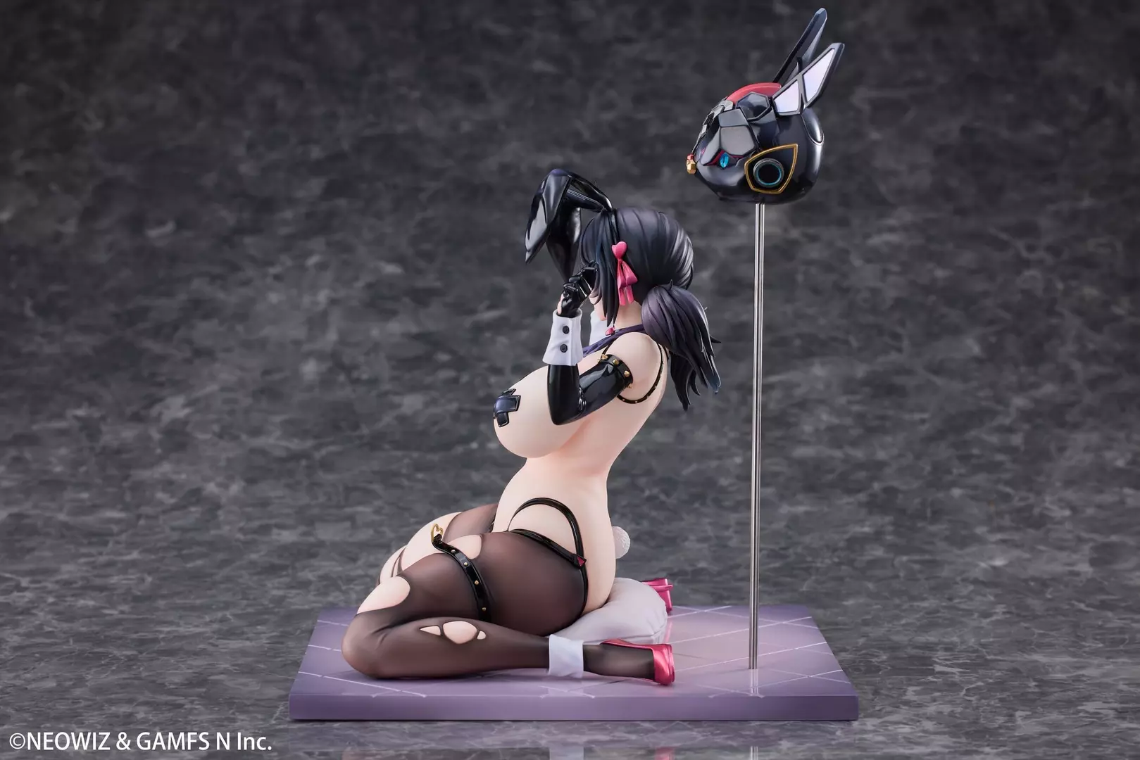 Loen se presenta en esta figura Celebrity Bunny Ver. a escala 1/6 de Brown Dust 2 con una pose provocadora y segura que subraya su carisma escénico y presencia dominante. El esculpido del rostro transmite una expresión confiada y sugerente, mientras que la pintura enfatiza los contrastes de la piel y los detalles del conjunto, logrando un acabado visual limpio y llamativo. El diseño combina elementos icónicos del estilo bunny con accesorios y una composición frontal muy marcada, reforzando el impacto visual de la pieza desde cualquier ángulo de exhibición.