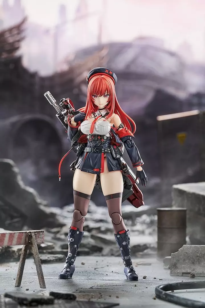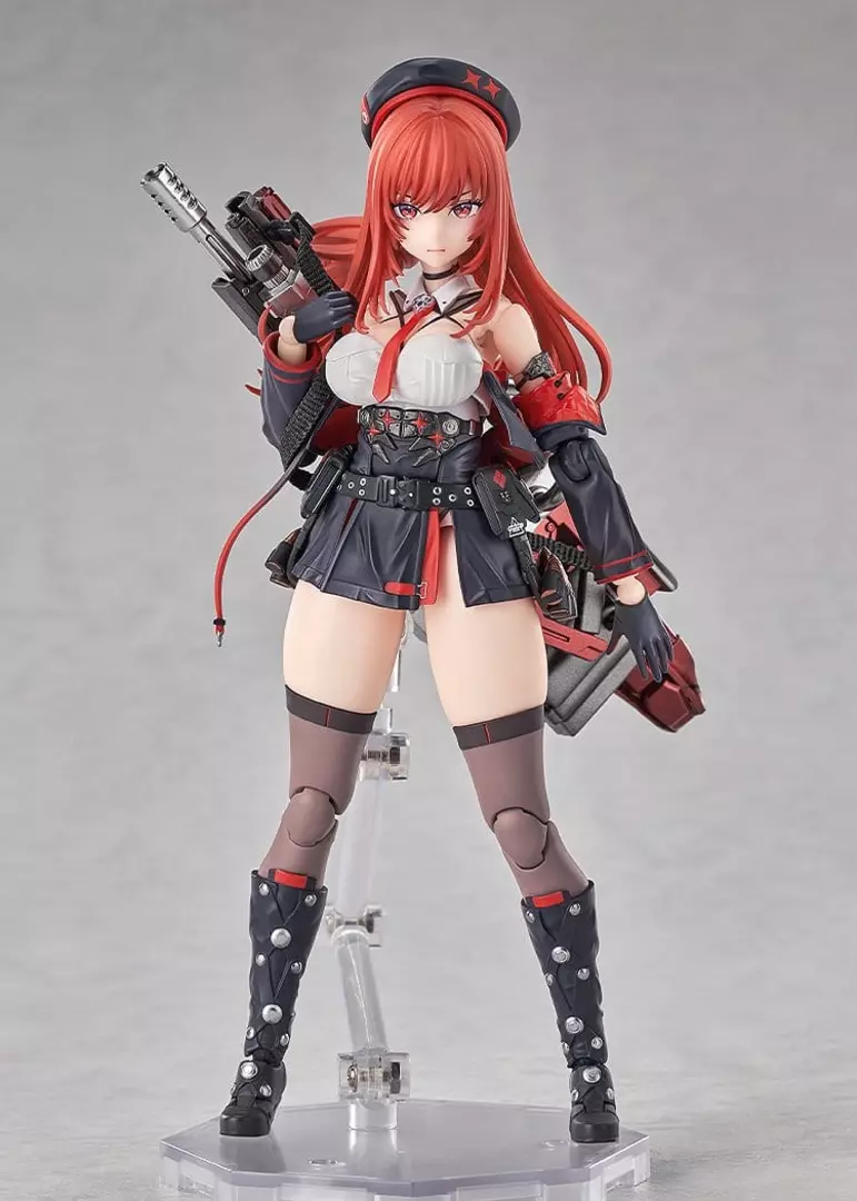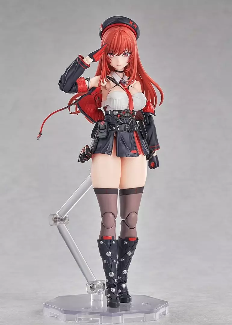 Desde Goddess of Victory: Nikke llega Rapi en su versión Red Hood, presentada por Good Smile Company dentro de la línea Hyper Body; con su característico cabello rojo, uniforme táctico en negro y rojo y potente armamento, esta figura captura su actitud firme y decidida en una pieza que combina estética de colección con articulaciones discretamente integradas, permitiendo recrear poses dinámicas sin sacrificar proporciones ni nivel de detalle en cada correa, funda y elemento mecánico del diseño original.