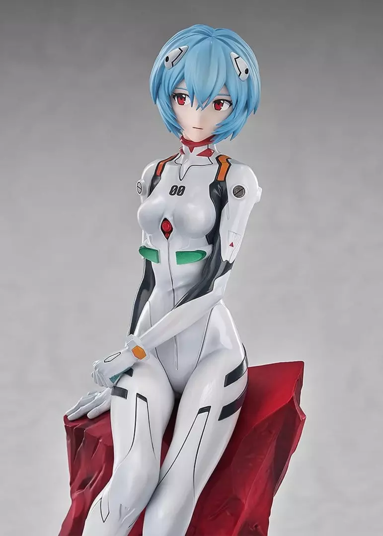 Rei Ayanami se presenta en esta elegante figura a escala 1/7 inspirada en Rebuild of Evangelion, capturando su carácter enigmático y sereno con una fidelidad extraordinaria. Sentada sobre una base de acabado cristalino en tonos rojizos, su pose transmite calma y delicadeza, mientras el detallado plug suit blanco resalta cada línea y panel con un acabado limpio y brillante. La expresión suave y la sutileza en la postura convierten esta pieza en una representación icónica de uno de los personajes más emblemáticos del anime.