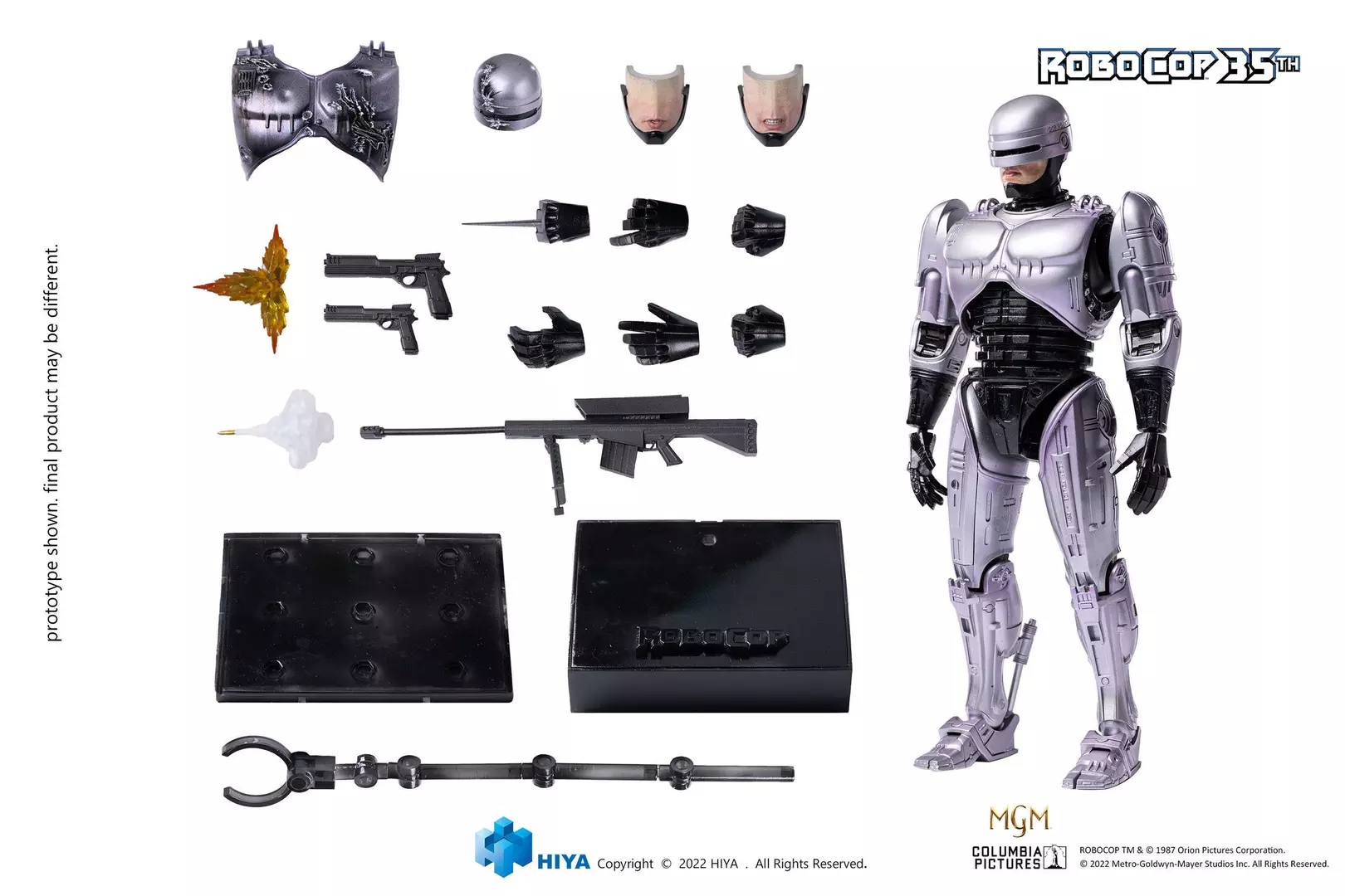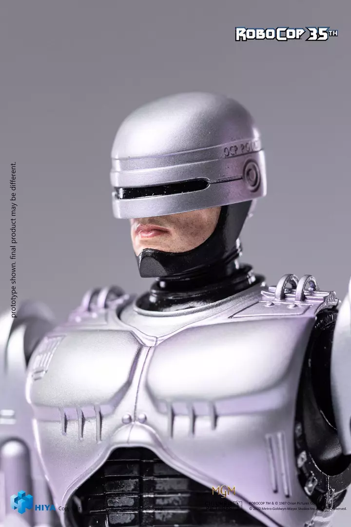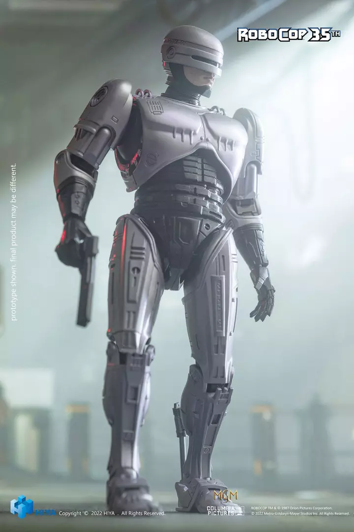 RoboCop, el legendario agente cibernético de Detroit, regresa con toda su presencia imponente en esta figura Exquisite Super de Hiya Toys, conmemorando el 35º aniversario del clásico cinematográfico. Esta versión 1/12 captura con gran fidelidad el diseño icónico del personaje, desde la armadura plateada con acabados metálicos hasta las proporciones realistas y la postura firme que transmite autoridad y precisión mecánica. El esculpido del casco, las placas corporales y los detalles de desgaste recrean a la perfección la estética del film original, mientras que el amplio surtido de accesorios permite representar múltiples escenas de acción.