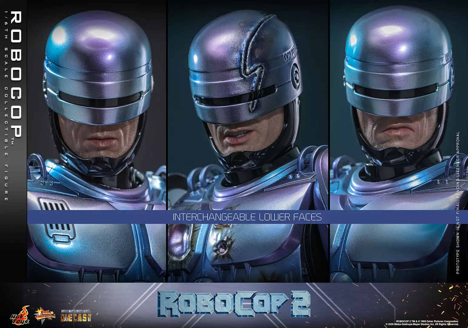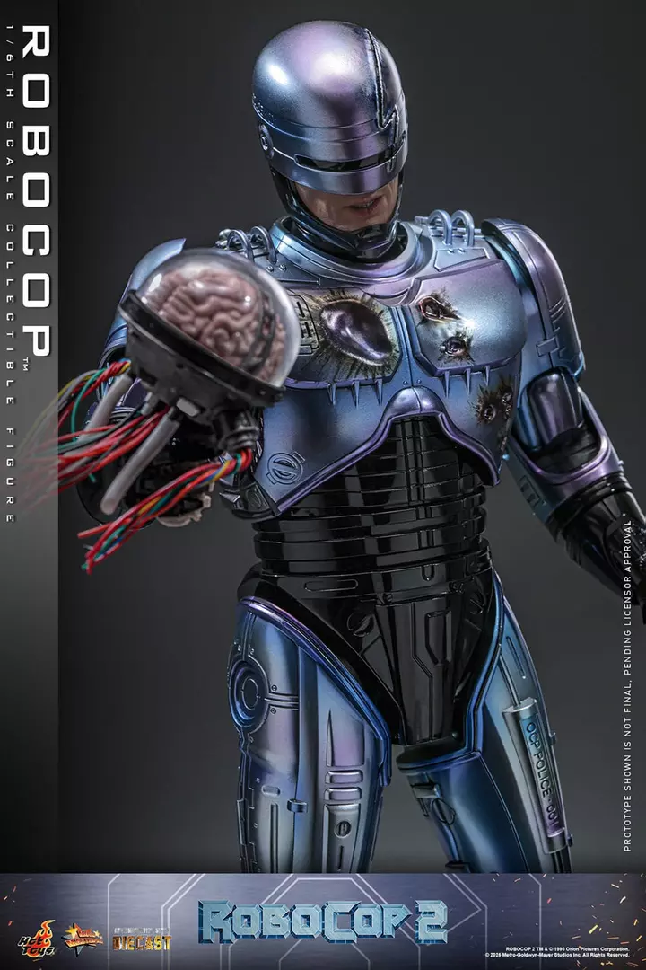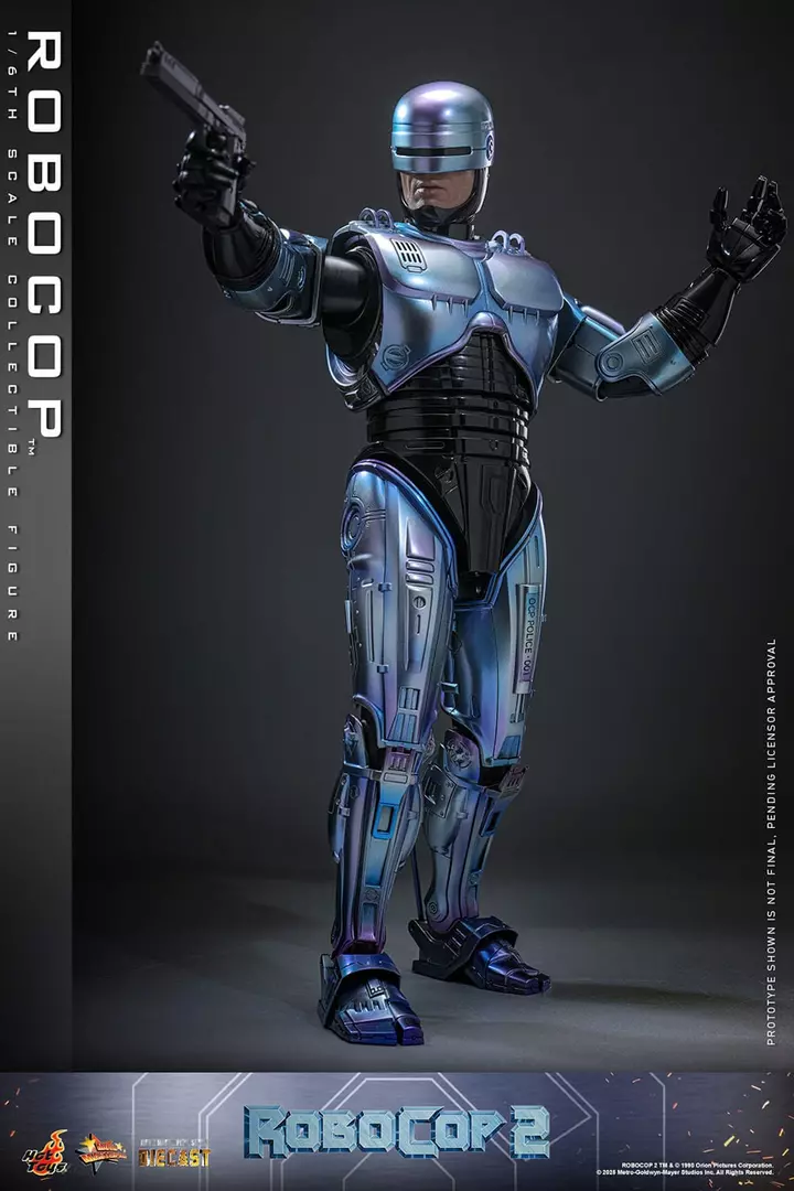 RoboCop regresa en esta imponente figura a escala 1/6 basada en RoboCop 2, reinterpretando al icónico agente con un nivel de realismo y presencia excepcional. Hot Toys reproduce con gran precisión la armadura metálica azulada, combinando superficies pulidas con zonas de desgaste que refuerzan su carácter mecánico y cinematográfico. La escultura del casco, el cuerpo parcialmente visible de Alex Murphy y los acabados en die-cast transmiten peso, solidez y fidelidad absoluta al diseño original de la película.