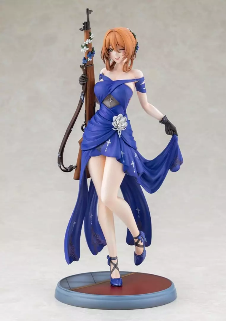 Inspirada en la elegante reinterpretación de Springfield dentro de Girls Frontline 2: Exilium, esta edición Radiance Ver. de Kotobukiya presenta al icónico personaje en una sofisticada puesta en escena que combina delicadeza y firmeza, luciendo un vestido azul de caída fluida que realza su silueta mientras sostiene su rifle con naturalidad y aplomo; la escultura transmite movimiento en cada pliegue del tejido, en la caída asimétrica de la falda y en la pose estilizada sobre base circular, creando una pieza de gran presencia que equilibra glamour, poder y refinamiento en una composición pensada para destacar en cualquier vitrina de alto nivel.