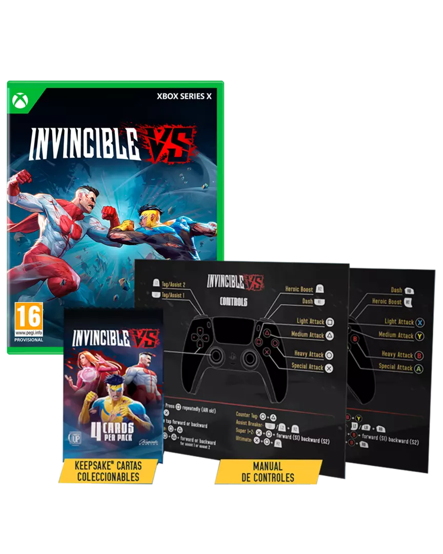 Invincible VS cuenta con diversos modos de juego, como un cautivador modo historia cinematográfico que narra una historia original creada por uno de los guionistas de la serie animada. Aventúrate en el modo Arcade y lucha con tu equipo, perfecciona tus combos en el modo Entrenamiento y pon a prueba tus habilidades contra el mundo entero en el modo multijugador, competitivo y casual. Los aficionados a la serie y los cómics, y los amantes de los juegos de lucha disfrutarán de una brutalidad heroica sin precedentes, donde cada golpe estremecedor te hará sentir... invencible