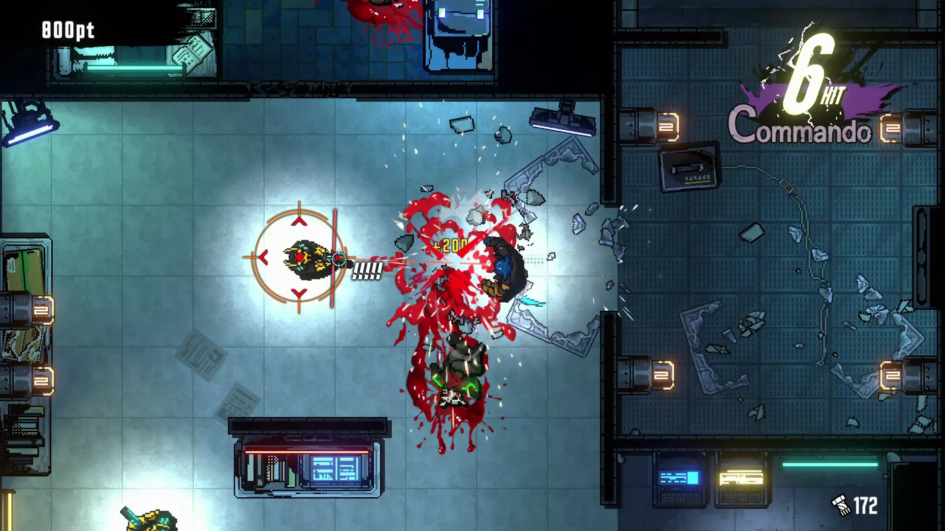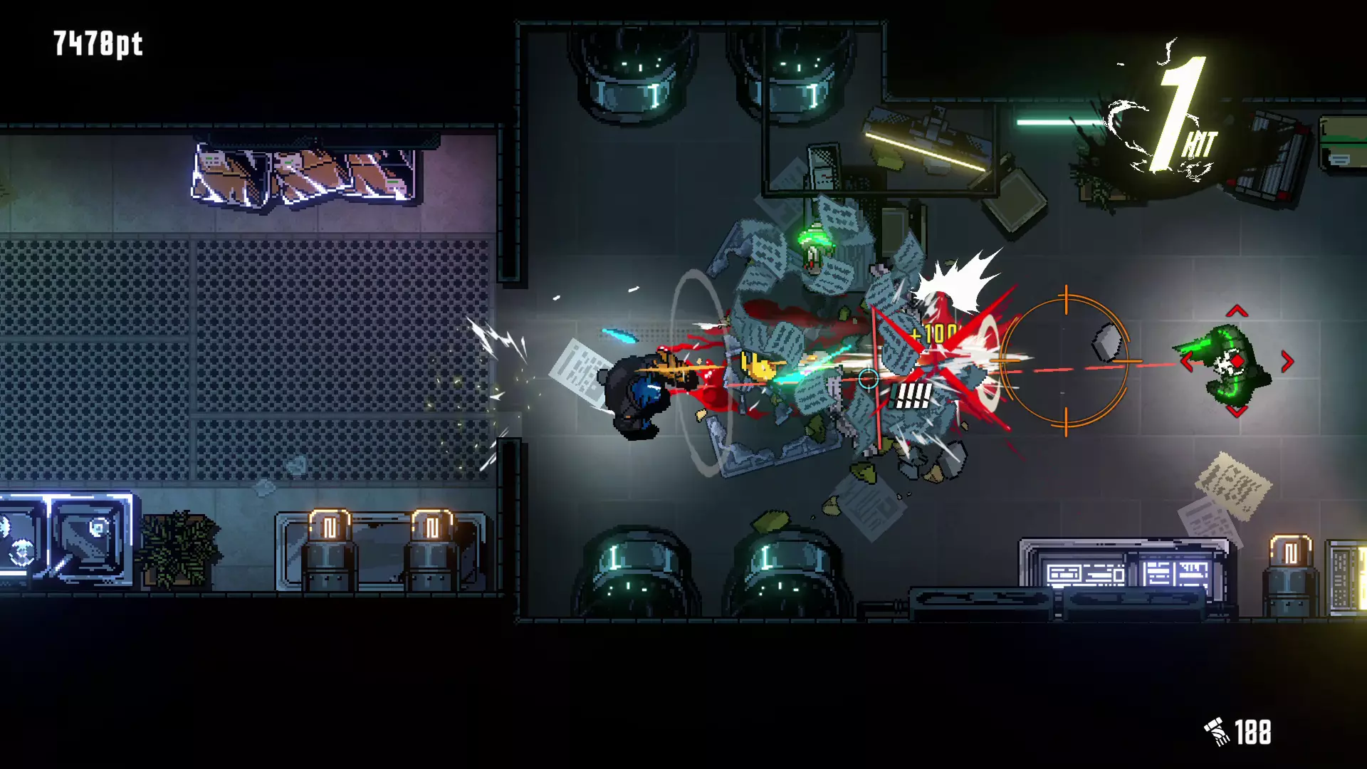 - Un sistema de combate intenso en vista cenital que rebosa estilo: Tiroteos brutales y precisos en los que cada movimiento cuenta. El juego con estilo se ve recompensado en arenas diseñadas al detalle.