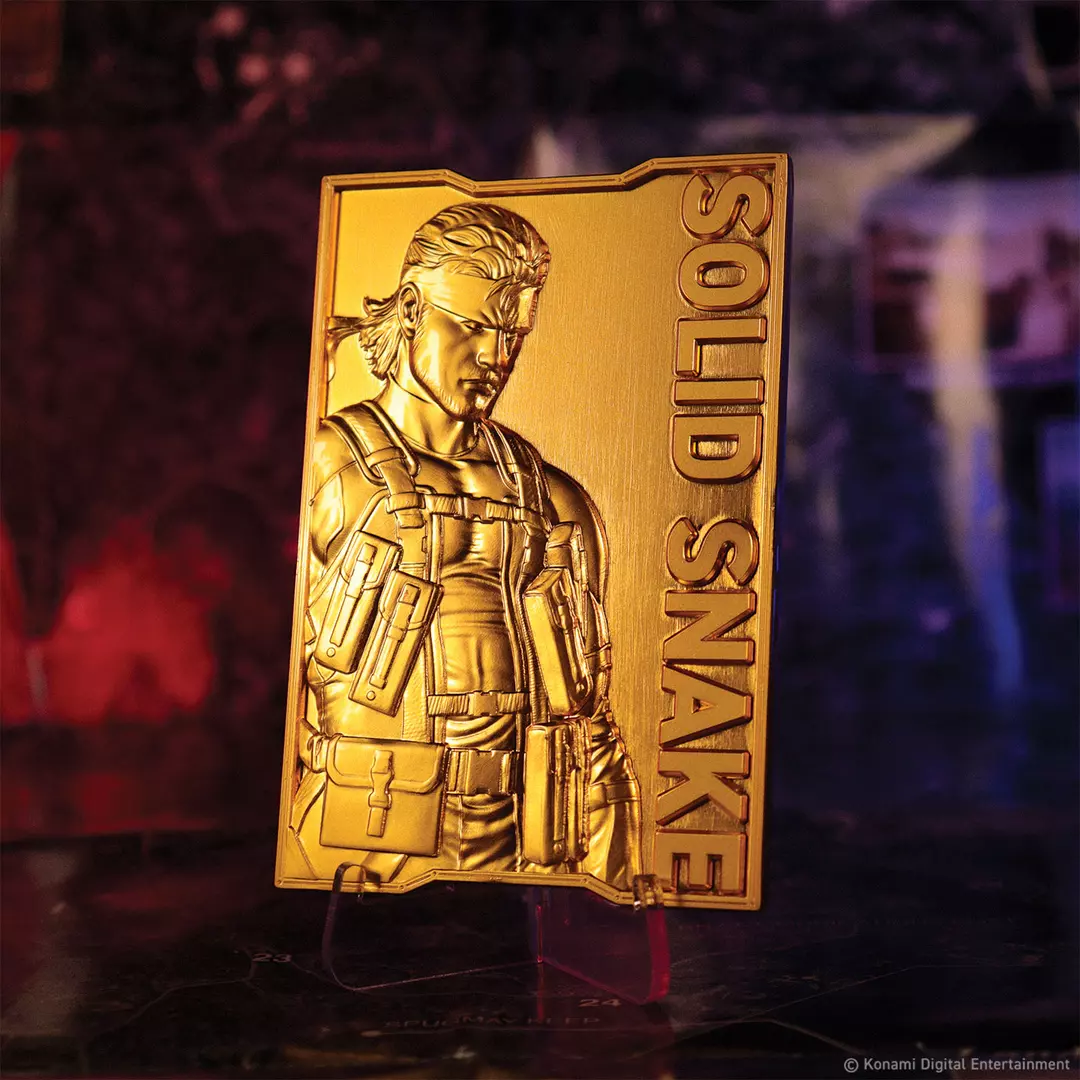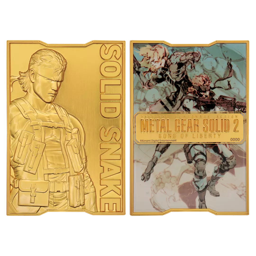 El legendario soldado, el héroe de la saga MGS, Solid Snake, pasa a un segundo plano en Metal Gear Solid 2, con el novato Raiden tomando el liderazgo, aunque Snake está presente a lo largo del camino para ayudar. Este lingote de edición limitada, impreso y chapado en oro de 24 quilates, incluye un soporte de exhibición dentro de su caja de presentación y está numerado individualmente como una de las 2.001 unidades (en referencia al año de lanzamiento del juego).