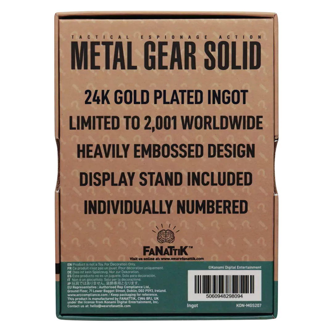 Lingote Solid Snake Metal Gear 2 24k Gold Plated Edición Limitada Fanattik