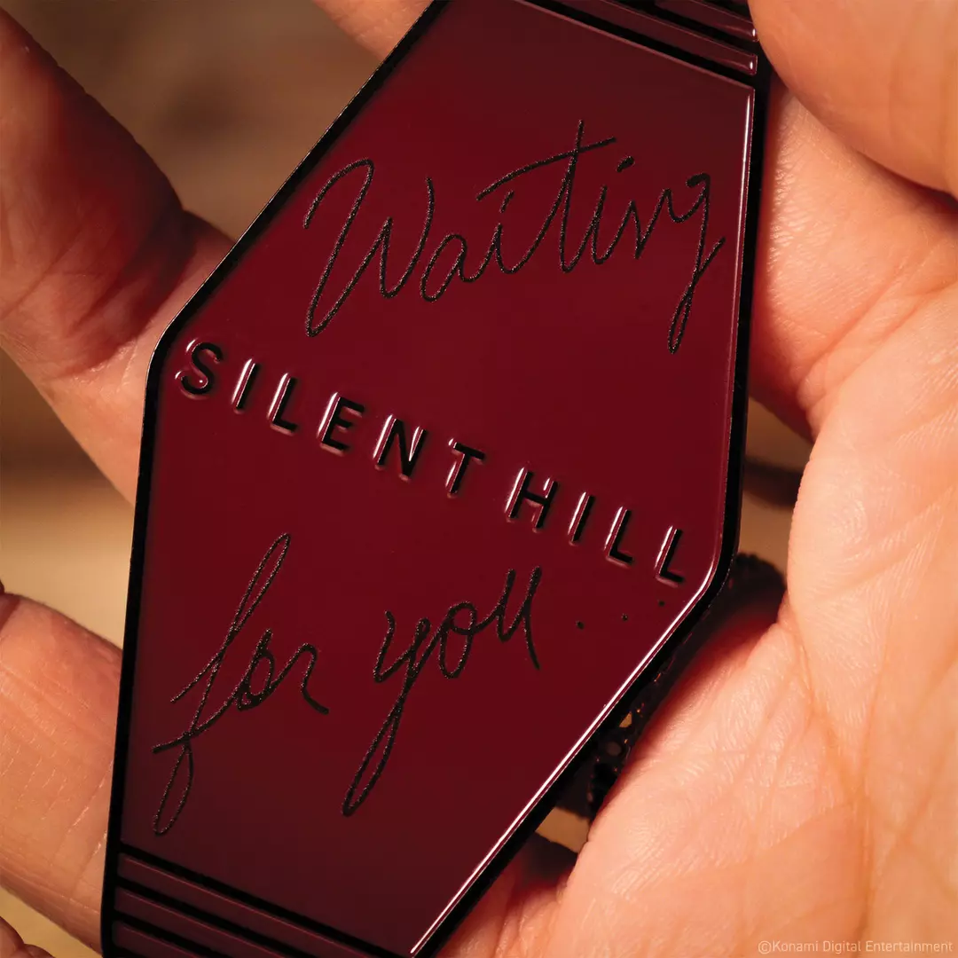 Cuando James encuentra el mapa del hotel durante su visita al pueblo en busca de Mary, la palabra "Esperándote" está escrita en la habitación 312, lo que le da esperanzas de que Mary está allí. Esto también está escrito en el reverso de este llavero del Hotel Lakeview, hecho de metal y acabado en esmalte rojo, numerado individualmente y limitado a 9995 unidades en todo el mundo.