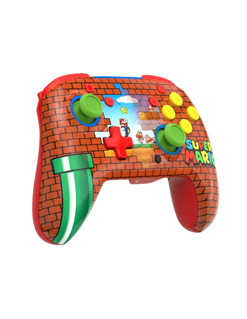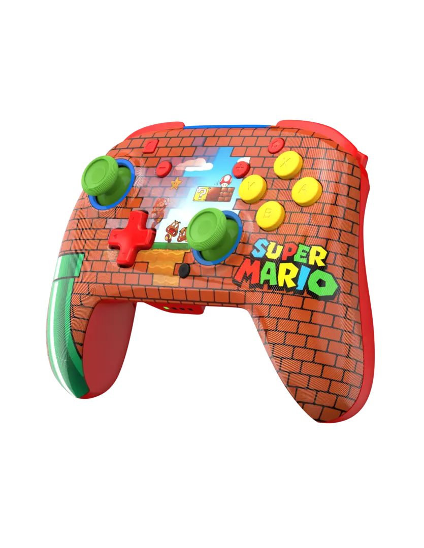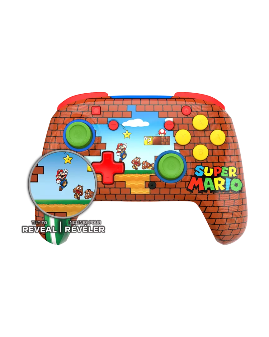 El Rematch Wireless Controller Mario Bricks Reveal celebra la energía y el espíritu clásico del universo Super Mario™ en un mando inalámbrico con diseño lenticular que revela dos ilustraciones diferentes según el ángulo desde el que se mire. Inspirado en los emblemáticos bloques de ladrillos, este accesorio ofrece una experiencia visual dinámica que da vida a cada sesión de juego en Mario Kart™, Super Mario Odyssey™ o Mario Party™.
