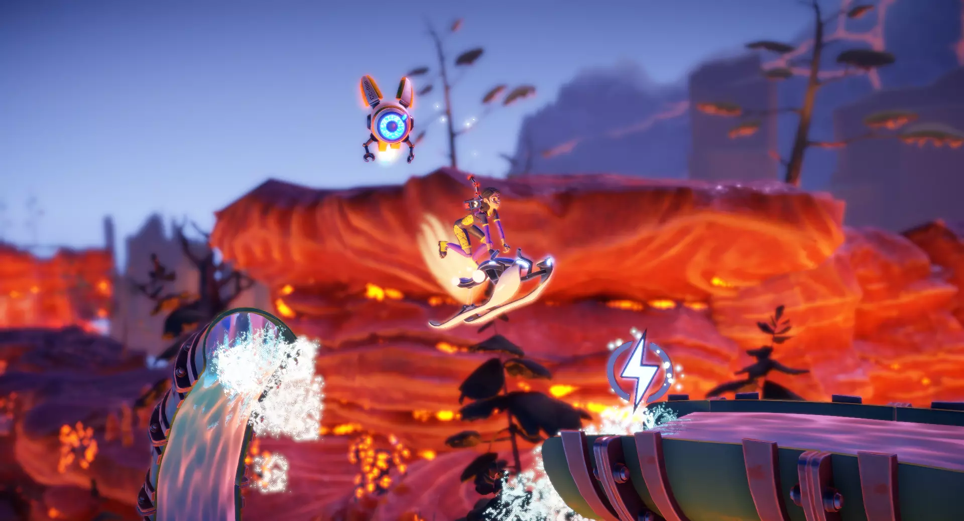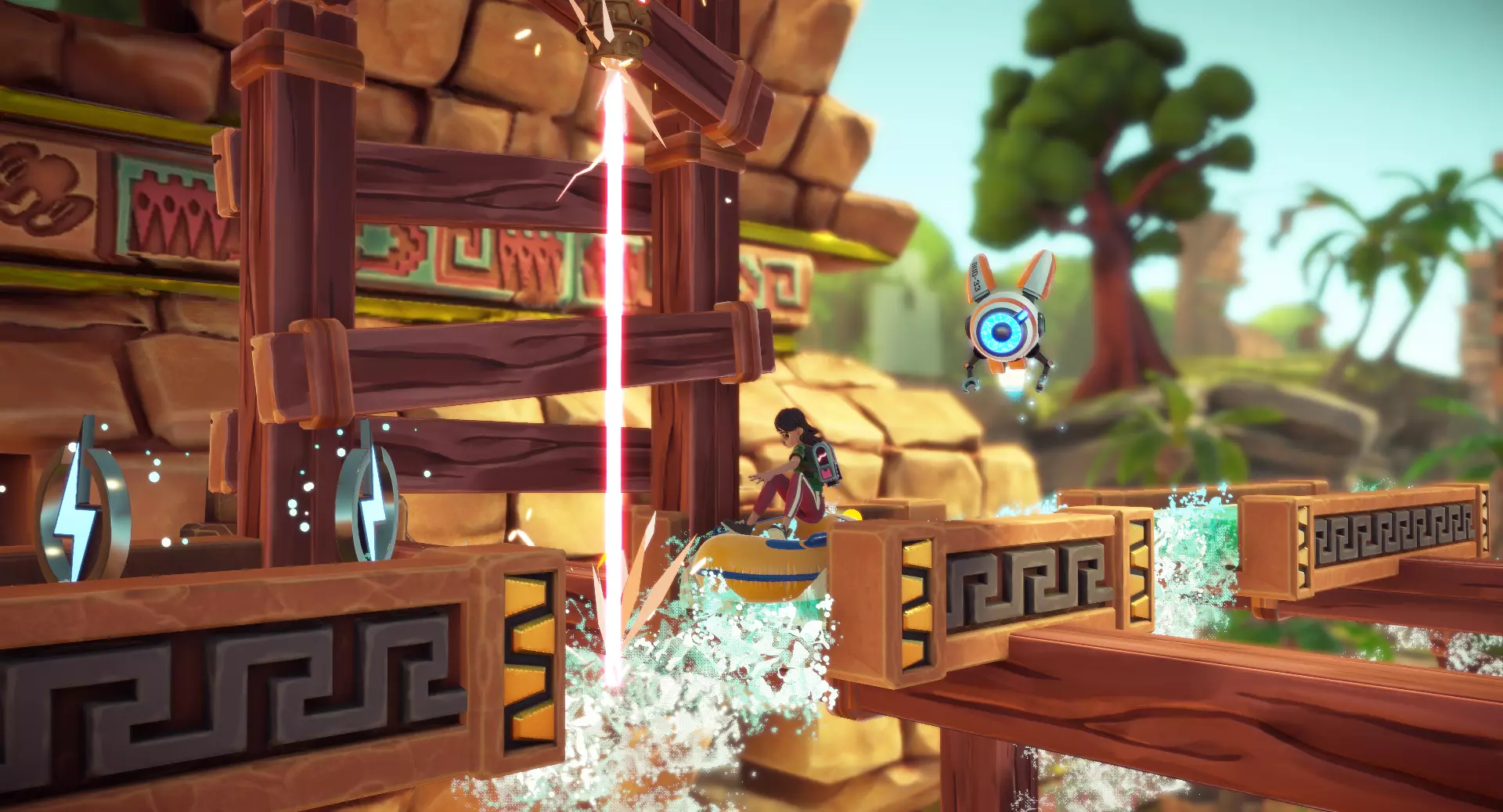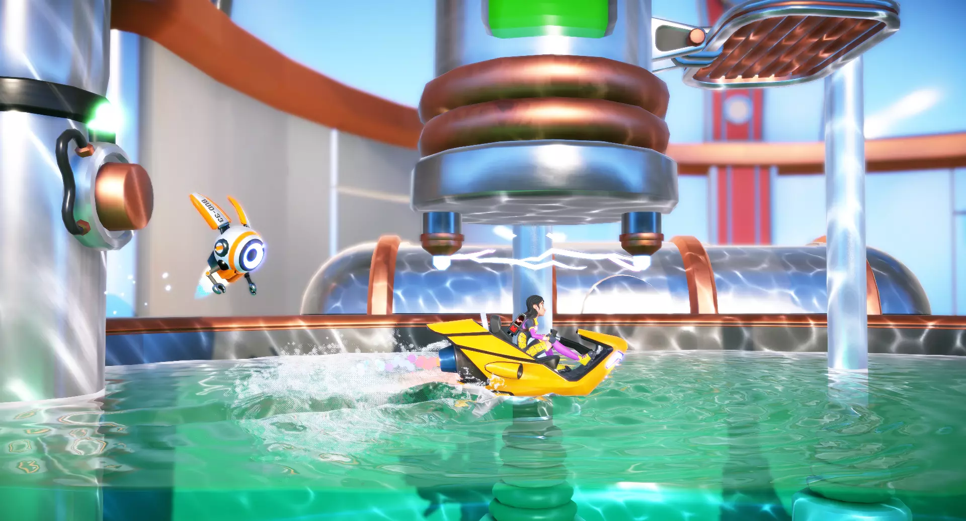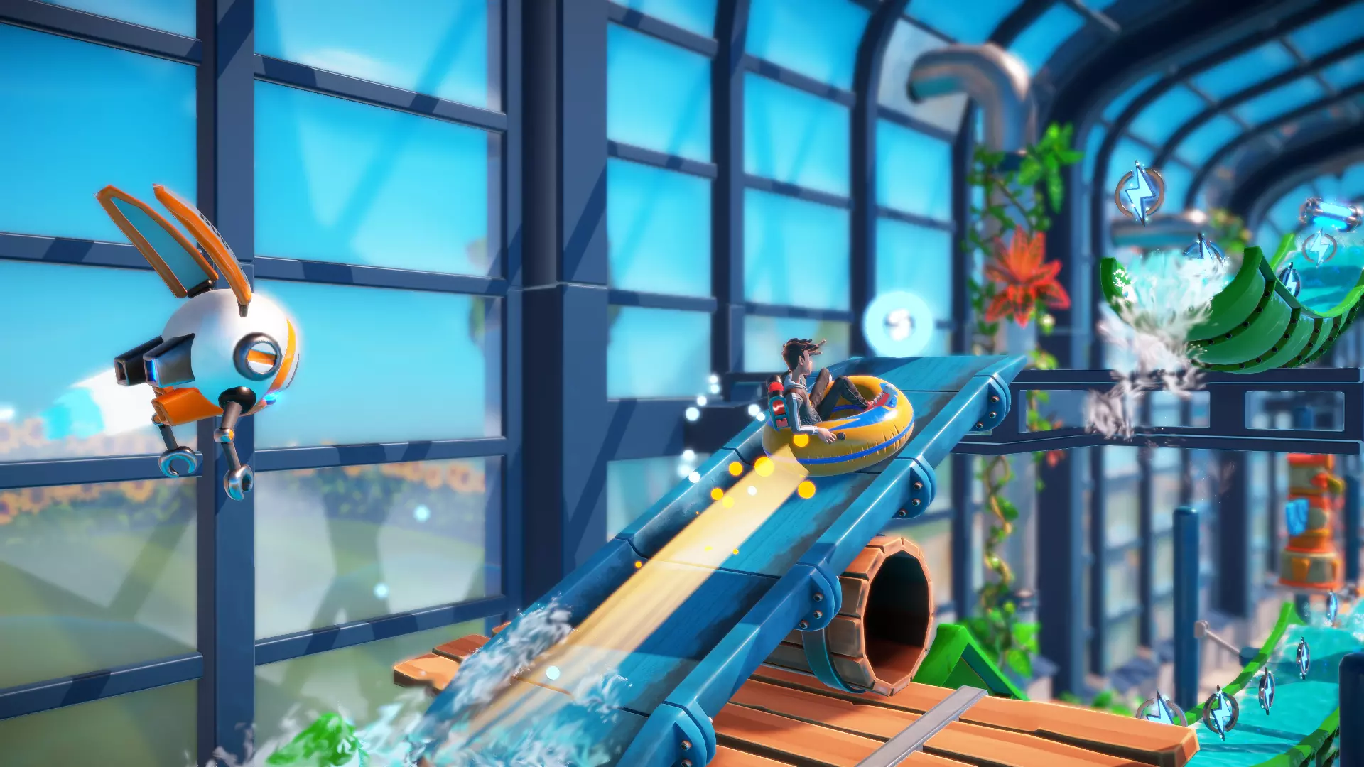 ¡Salta, deslízate y corre a través de una serie de desafiantes toboganes de agua 2.5D para acabar con el Dr. Fisher y salvar a tus padres! Pero no espere un paseo por el parque. ¡Debido a la maldición, todas las diapositivas están totalmente FUERA DE CONTROL! Cada área está llena de peligros, obstáculos y enemigos que te esperan en cada esquina, así que prepárate antes de que te aniquilen. Afortunadamente, no estás solo en esto, ya que estarás acompañado por tu dron especial de vlogueo espía B.U.D.D.Y.