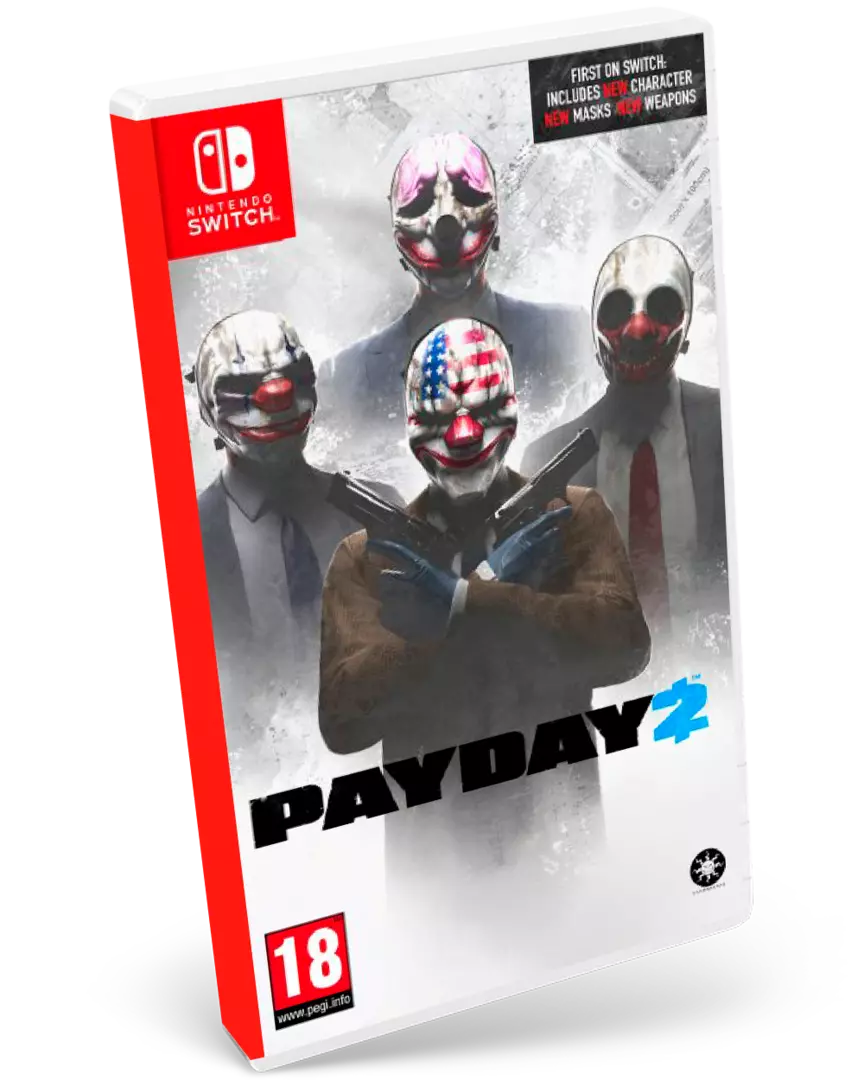 La versión de Payday 2 para Switch permite usar la pantalla táctil en los menús. Además, hay una nueva función de vibración que reacciona cuando disparas el arma o lanzas una granada, por ejemplo. También hemos añadido un modo multijugador local a CRIME.NET, que se llama CRIME.NET Local Play. Gracias a este modo, podrás crear una partida local e invitar a amigos que estén jugando en tu misma red local. Por último, la versión de Switch incluye a un personaje exclusivo llamado Joy, que contará con sus propias arma y máscara.
