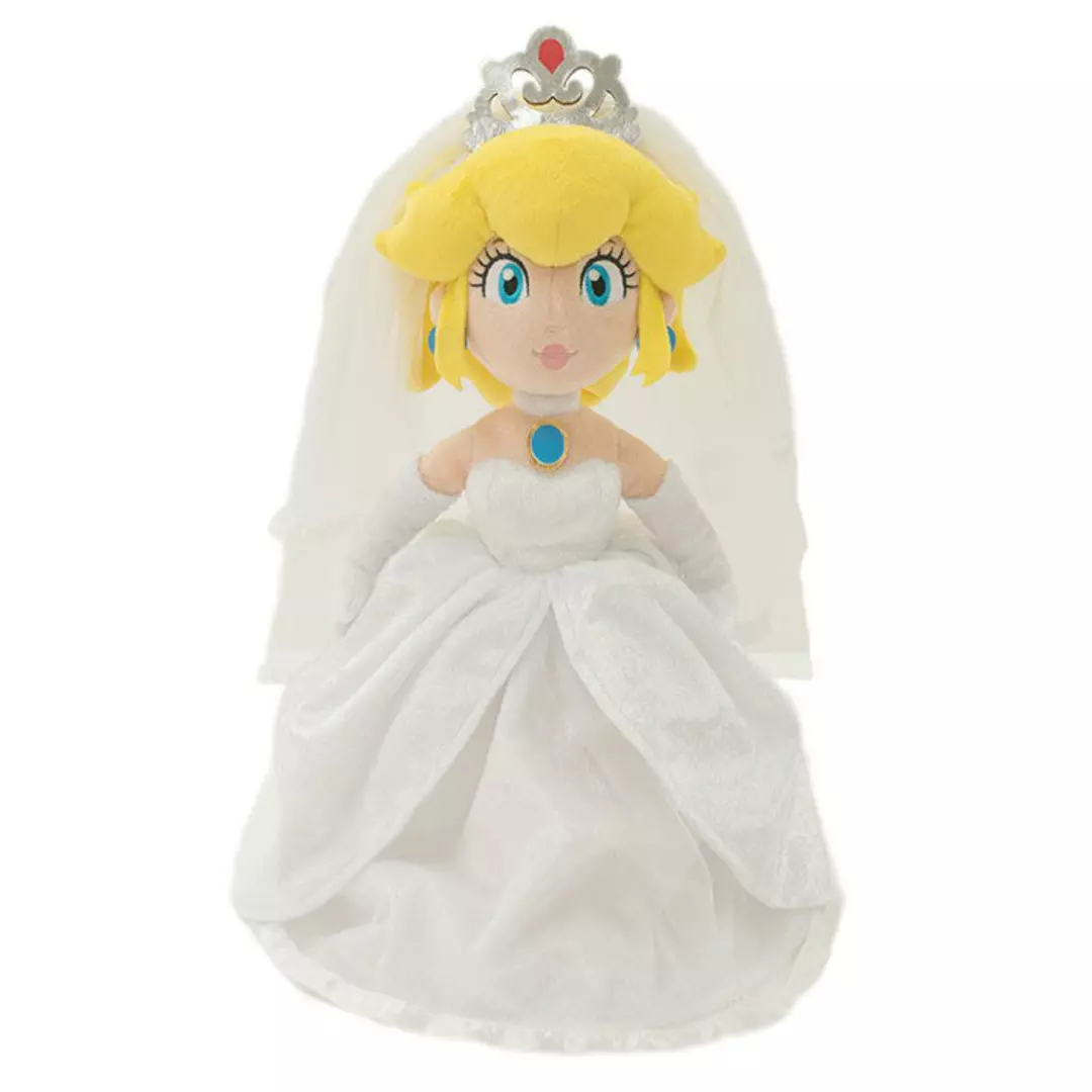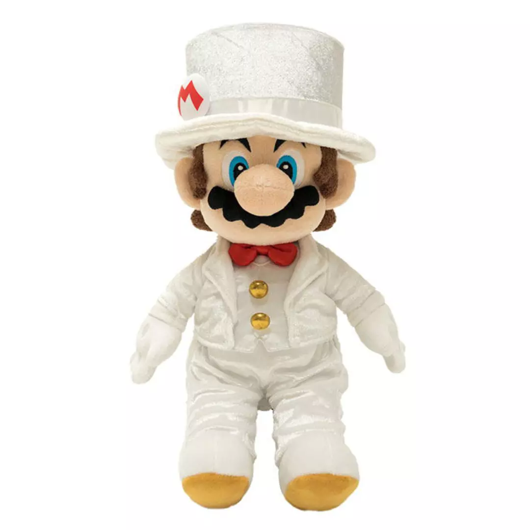 Celebra uno de los momentos más memorables de Super Mario Odyssey con este encantador set de peluches de Mario y Peach en versión boda. Inspirados en la escena del Reino de las Capas del juego, ambos personajes aparecen vestidos con elegantes trajes nupciales: Mario con su característico traje blanco y sombrero de gala, y la princesa Peach con un delicado vestido de novia acompañado de su tiara y guantes. Con un acabado suave y gran fidelidad al diseño original, este conjunto captura a la perfección el estilo del universo Mario.
