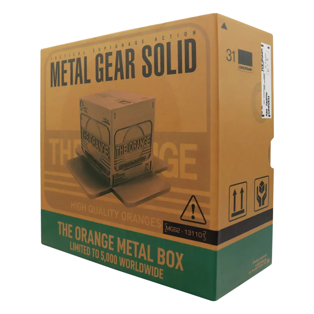 Sinónimo de la saga de videojuegos Metal Gear Solid, la humilde caja de cartón fue utilizada extensamente como cobertura para moverse sigilosamente por Raiden en Metal Gear Solid 2, y esa versión se reproduce aquí en formato metálico con un acabado en oro antiguo. Cada caja con licencia oficial presenta un relieve profundo y está limitada a 5.000 unidades en todo el mundo.