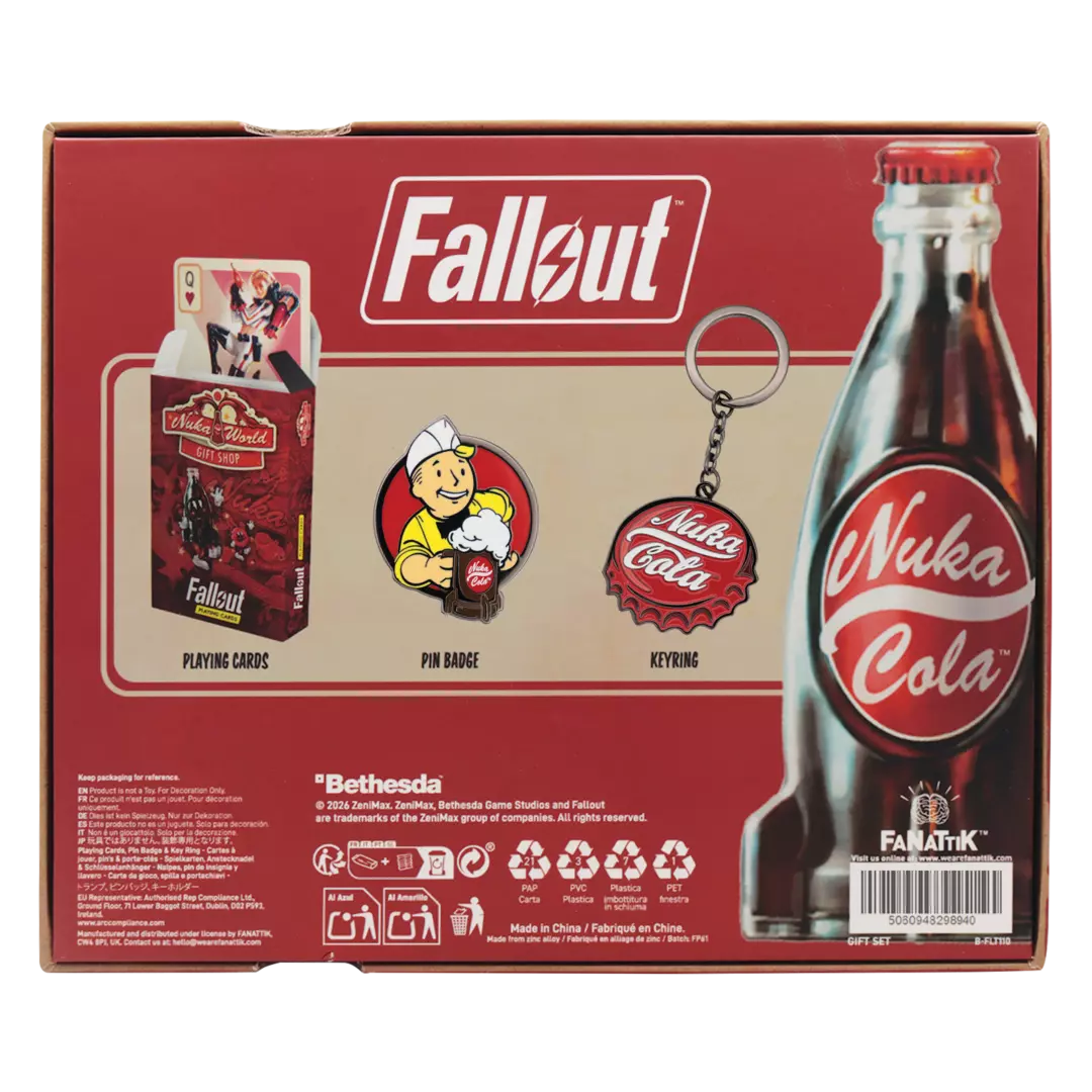 Un set imprescindible para fans de Fallout que buscan una experiencia de coleccionismo inmersiva y cargada de referencias. Esta caja regalo es perfecta como pieza central de una colección temática o como obsequio premium para cualquier habitante del Yermo que valore los detalles y la narrativa del universo postnuclear.