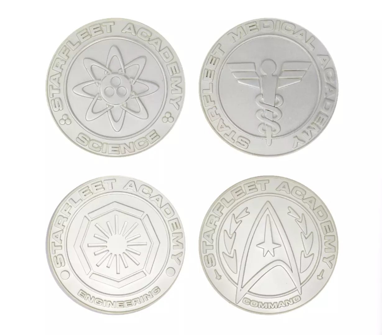 Apoya a la Academia de la Flota Estelar con este set de edición limitada de medallones de división con baño de plata .999, que incluye las divisiones de Mando, Ciencia, Ingeniería y Medicina. Limitado a 1.000 unidades en todo el mundo, este coleccionable con licencia oficial de Fanattik está numerado individualmente.