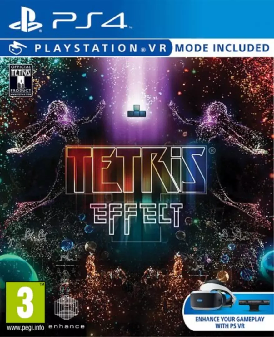 Tetris® Effect: un Tetris como nunca antes habías visto, basado en uno de los juegos de puzles más populares de todos los tiempos. Una experiencia única, adictiva e imponente del equipo tras el laureado Rez Infinite y el legendario juego de puzles Lumines. Puedes disfrutar de él tanto en el maravilloso 3D que ofrece PS VR como en una pantalla estándar (hasta 4K y 60fps en PS4™Pro).