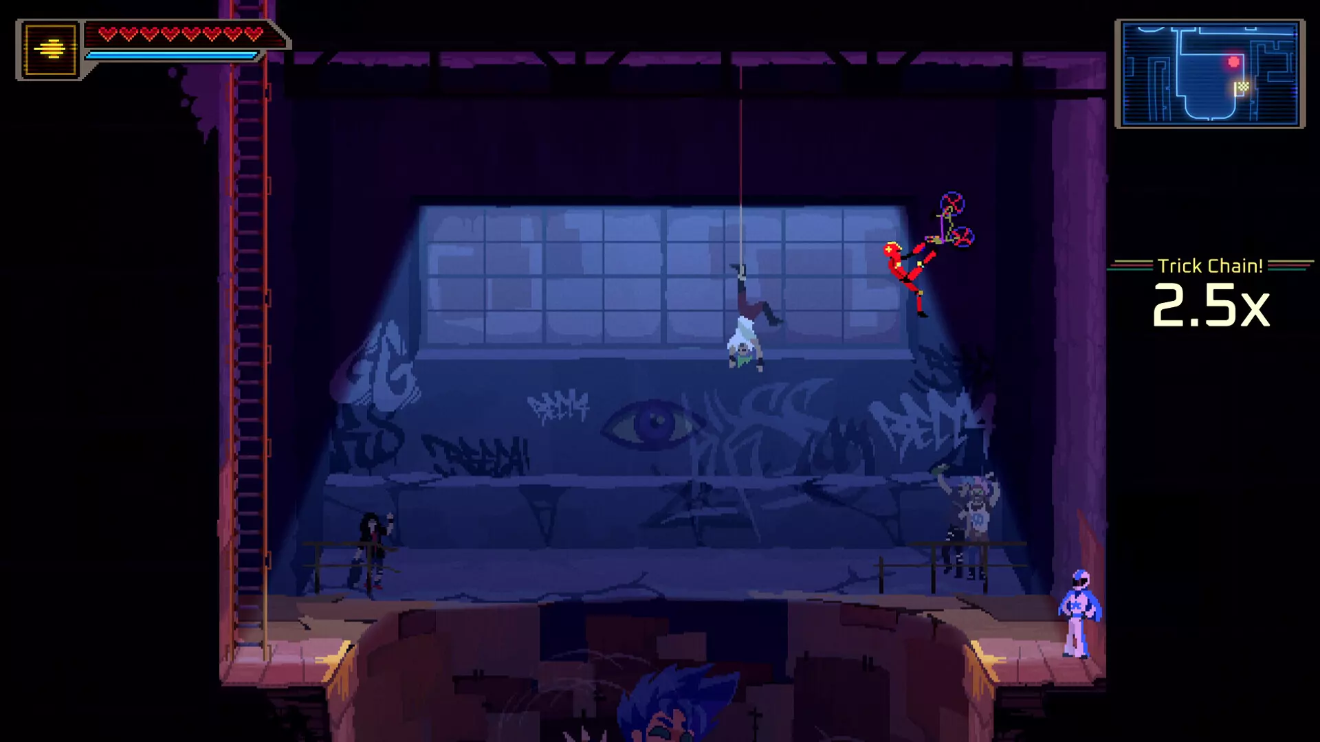 Un metroidvania de acción desbordante que combina BMX, combates salvajes y pixel art ultraviolento en una aventura postapocalíptica cargada de humor, estilo y espíritu ochentero.